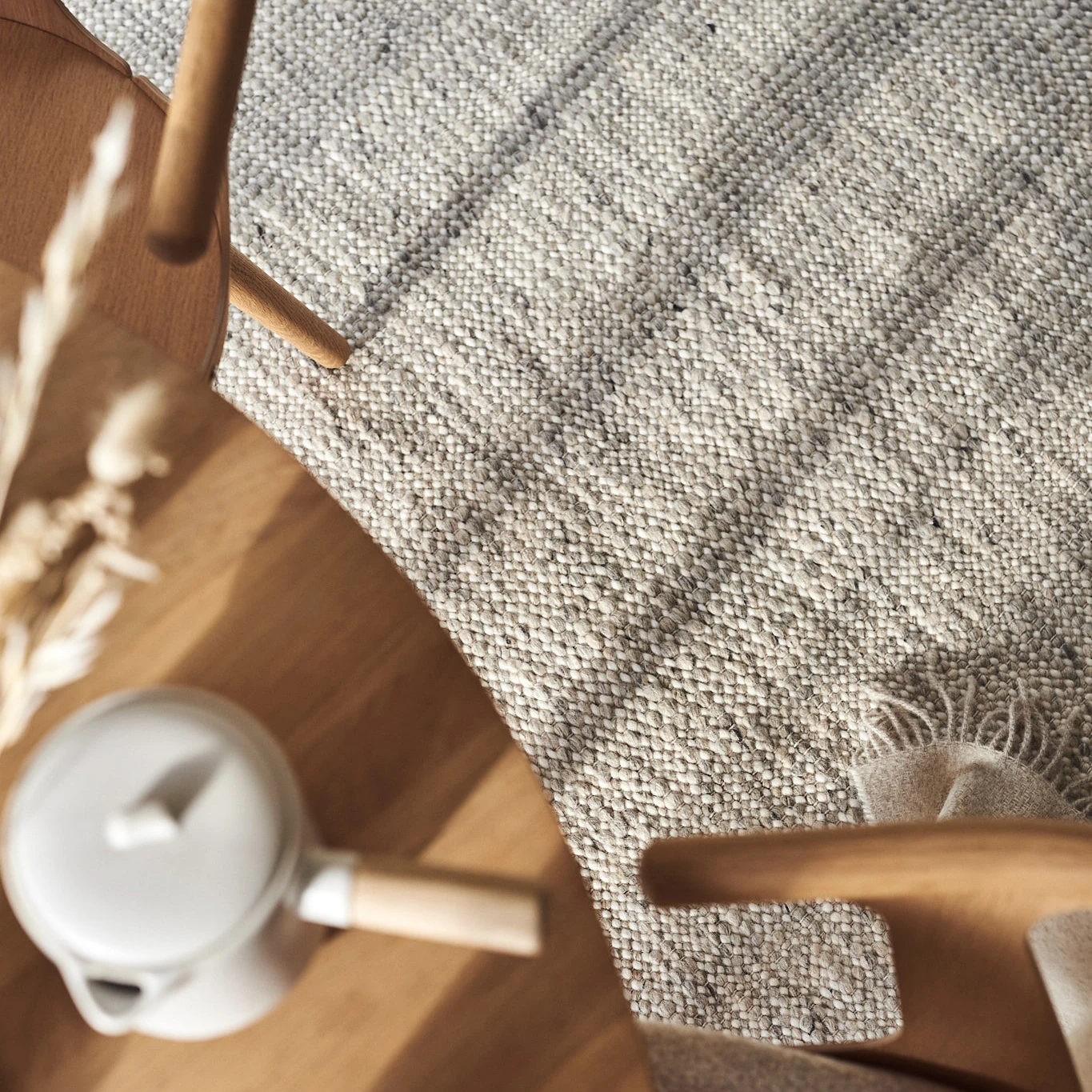 Fawn is een wit wollen vloerkleed van Scandi Living, gemaakt van Nieuw-Zeelandse wol. Fawn heeft een natuurwitte basis met lichtgrijze en natuurwitte elementen in de wol. De onregelmatigheid in het dikke, grijswitte wollen garen geeft het wollen vloerkleed leven en structuur. Het vloerkleed is net zo geschikt voor in de woonkamer als in de hal, want wol is een zeer duurzaam materiaal. Het vloerkleed is net zo zacht als de vacht van een reekalf en heeft daarom de naam Fawn gekregen.